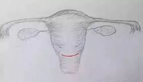 上圖:子宮上同樣有這樣一條瘢痕,不能因?yàn)榭床坏蕉雎运拇嬖?/span>